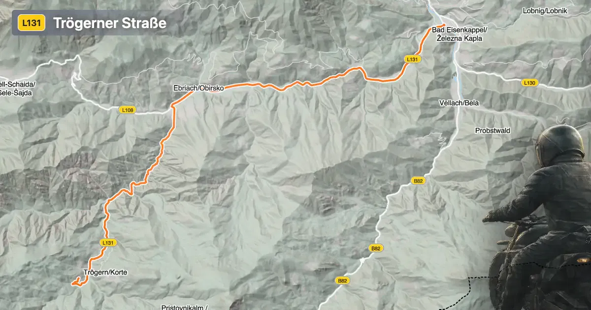 Trögerner Straße is subject to certain restrictions due to its location within a UNESCO Global Geopark and its proximity to protected natural areas. There are no permanent closures for motorcycles reported, but temporary closures may occur due to maintenance, weather conditions, or local events. The road may be closed or have limited access during winter months, especially in case of heavy snowfall or adverse weather, as is common in alpine regions. Riders are advised to check local sources or the Karawanken-Karavanke UNESCO Global Geopark website for up-to-date information on accessibility before planning their trip.