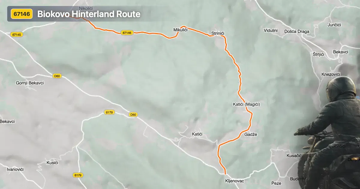 While Lokalna cesta 67146 itself does not pass through any settlements or directly connect to major tourist attractions, its proximity to the Biokovo Nature Park makes it a strategic route for riders interested in exploring the region's natural beauty. The Biokovo mountain range is renowned for its rugged landscapes, panoramic viewpoints, and diverse flora and fauna. Riders may consider extending their journey to visit the Biokovo Mountain, which offers hiking trails and the famous Skywalk viewpoint. The road's rural setting also provides opportunities to experience the tranquility of the Dalmatian hinterland, away from the more crowded coastal areas.