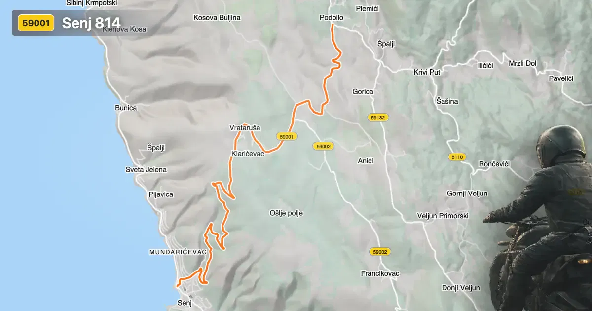 Senj 814 is situated in the northern coastal region of Croatia, beginning and ending near the town of Senj. The road traverses the foothills above the Adriatic Sea, providing access to local settlements and viewpoints. Its proximity to Senj, a town known for its medieval fortress and strategic coastal position, makes it a practical route for riders seeking to explore both the urban and natural landscapes of the region. An interactive map showing the precise route of Senj 814 can be found at the end of this article.