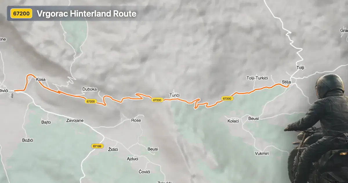 The Vrgorac Hinterland Route is situated in southern Croatia, in the vicinity of the town of Vrgorac. This area lies inland from the Adriatic coast, offering a quieter alternative to the busier coastal highways. The road begins approximately 6.4 km (4 miles) from Vrgorac, making the town a convenient base for riders. The region is characterized by rolling hills and agricultural landscapes, providing a distinct contrast to the nearby Dalmatian coastline. An interactive map showing the route can be found at the end of this article.