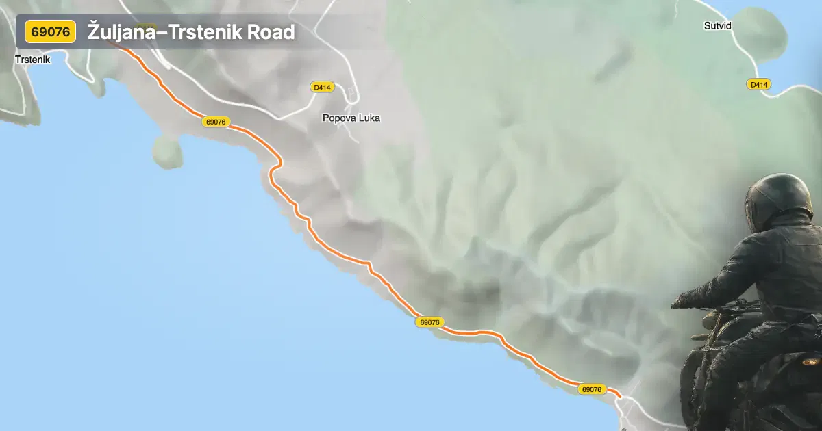 There are currently no known restrictions or closures for motorcycles on the Žuljana–Trstenik road. The route remains open throughout the year, as the region's Mediterranean climate rarely results in conditions severe enough to warrant seasonal closures. However, local events or maintenance work may occasionally cause temporary disruptions. Riders are advised to check with local authorities or the Croatian Automobile Club (HAK) for up-to-date information on road conditions before planning their journey.