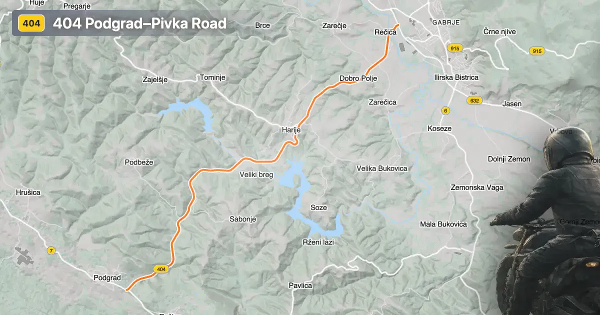 The 404 Podgrad–Pivka road offers a straightforward yet rewarding ride through the Brkini and Podgrajsko podolje regions. With its well-maintained surface, gentle curves, and rural surroundings, it is suitable for riders seeking a relaxed journey away from busier tourist routes. The proximity to Ilirska Bistrica and attractions such as Snežnik Castle adds further value for those interested in exploring the cultural and natural heritage of southwestern Slovenia. An interactive map of the route is available below for trip planning purposes.