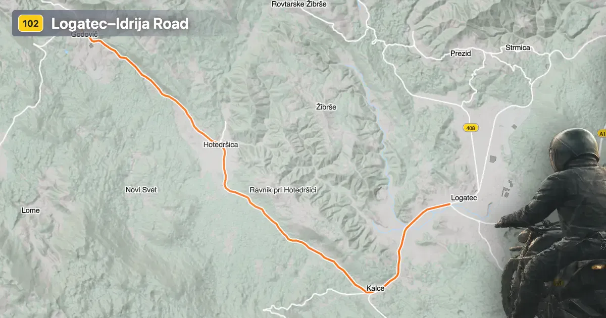The Logatec–Idrija road is situated in western Slovenia, linking the town of Logatec with the historic mining town of Idrija. The route passes through the settlements of Hotedršica and Godovič, traversing a region characterized by rolling hills and forested terrain. This corridor serves as a primary connection between the Ljubljana Basin and the Idrija region, making it a practical choice for both local traffic and touring motorcyclists. An interactive map showing the road can be found at the end of the article.