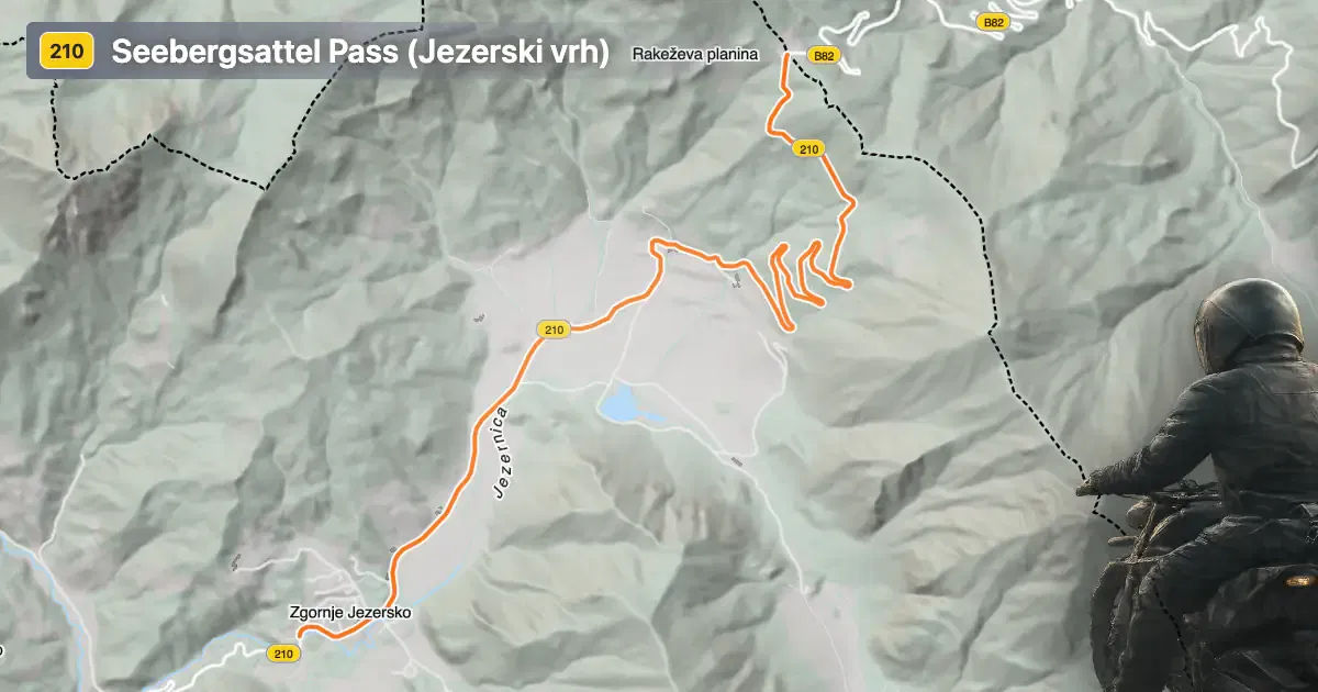 The highlight of this route is the crossing of the Seebergsattel Pass, a historic border point between Slovenia and Austria. The pass itself sits at 1,215 m (3,986 ft) and is well-known among motorcyclists for its combination of elevation, views, and technical riding. The road traverses the Kamniško-Savinjske Alpe and skirts the Karavanke range, offering access to several viewpoints along the way. While the route itself is the main attraction for riders, the surrounding area is known for its alpine landscapes and proximity to natural features such as glacial valleys and mountain lakes. The village of Zgornje Jezersko serves as a gateway to hiking trails and local hospitality, while the Austrian side leads towards the spa town of Bad Eisenkappel.